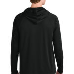 A top choice for sports and exercise, this hooded long sleeve tee combines a comfortable fit with performance features such as moisture wicking and sun protection. 4-ounce, 100% recycled poly interlock Moisture-wicking Stain release Odor-resistant Snag-resistant UPF rating of 44+ Raglan sleeves Reinforced shoulder seams for durability Double-needle coverstitching on hem Tag-free label