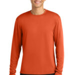 A top choice for sports and exercise, this long sleeve tee combines a comfortable fit with performance features such as moisture wicking and sun protection. 4-ounce, 100% recycled poly interlock Moisture-wicking Stain release Odor-resistant Snag-resistant UPF rating of 44+ Reinforced shoulder seams for durability Double-needle coverstitching on hem Tag-free label