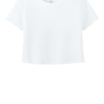 Flowy fit Tailored sleeve Side seamed Modest crop Tear-away label 3.7-ounce, 65/35 polyester/viscose, 32 singles