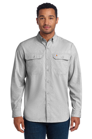You can’t control the weather, so you might as well dress for it. With a sun-smart UPF 50+ rating, this quick-drying, lightweight, woven shirt sheds sweat to regulate your body temperature in a range of conditions. 2.9-ounce, 71/29 poly/nylon chambray Carhartt Force technology wicks sweat, dries fast and fights odors FastDry ® technology keeps you cool for all-day comfort Rugged Flex ® technology for ease of movement UPF 50+ Button-down collar Back yoke shoulder pleats for ease of movement Two chest pockets with pen stalls, mitered flaps and button closures Two-button adjustable cuffs with extended plackets Carhartt label sewn on left chest pocket Relaxed fit