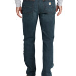 For double shifts or 14-hour days, these jeans can stand up to almost any job. They’re made of Carhartt’s most-durable, abrasion-resistant denim with Rugged Flex technology for comfortable movement. 12-ounce, 85/14/1 cotton/poly/spandex denim Rugged Flex ® durable stretch technology for ease of movement Sits slightly below the waist Comfortable fit through the seat and thigh with more room to move Stronger sewn-on seam belt loops Straight leg opening fits over boots Carhartt label sewn on right rear pocket Relaxed fit