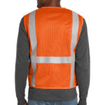 Loaded with six pockets, this breathable vest has plenty of storage for tools and other work items. 100% polyester mesh for breathability 100% polyester tricot pockets for durability and easy decoration Durable, reflective 2-inch tape meets ANSI 107 requirements and provides 360-degree visibility on body Open left chest pocket Divided right chest pocket Two lower front flap pockets with hook and loop closures Interior open lower pockets on both sides Mic clip at left chest for easy access Molded center front zipper closure This garment must be fully zipped to be in compliance with ANSI 107 standards