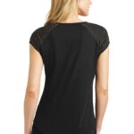 Contrast studs at the shoulders punch up this tee with a bold look. | 3.5-ounce, 60/40 ring spun cotton/poly, 40 singles