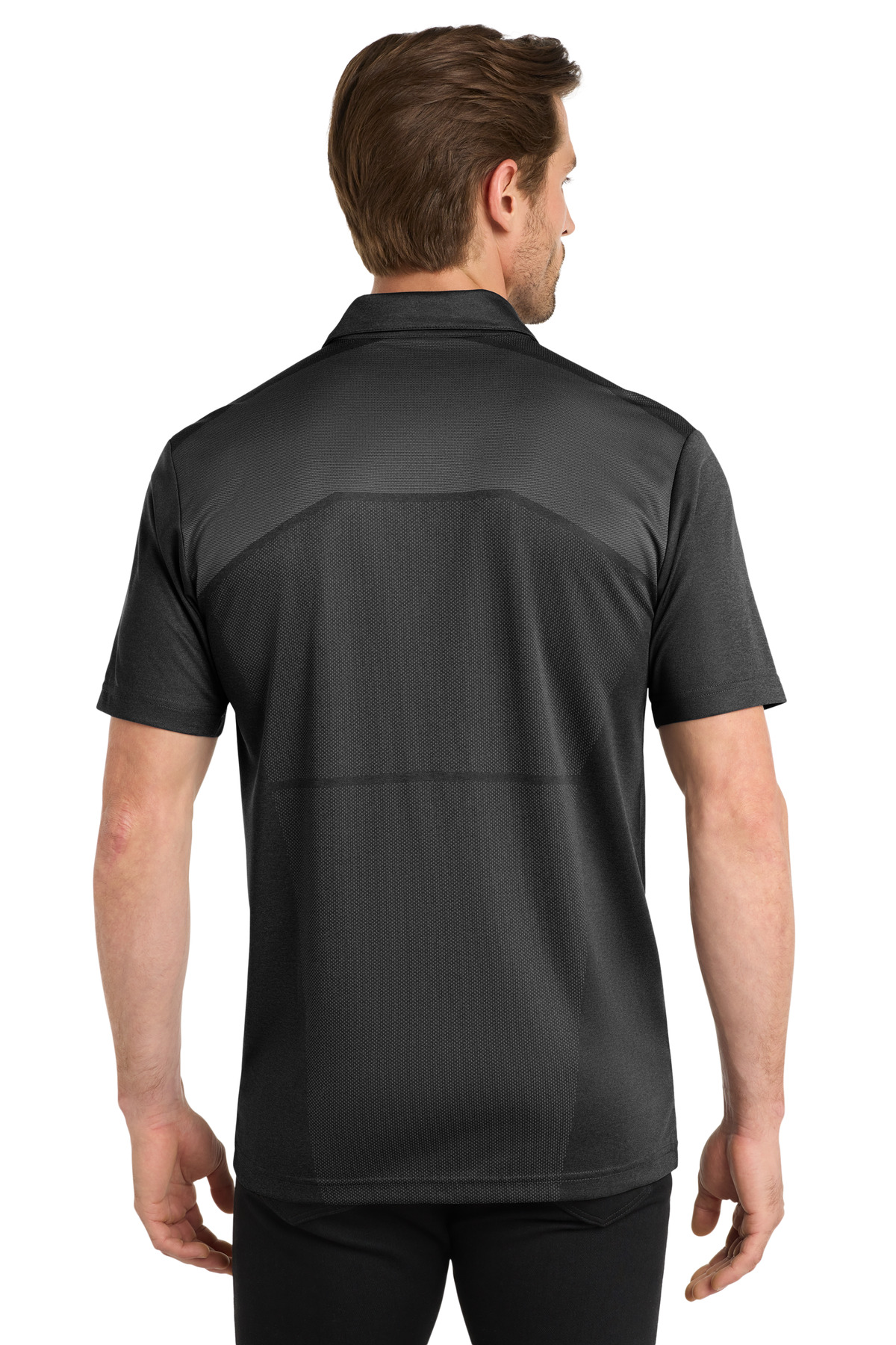 Engineered with an innovative pattern map look, this performance polo stands out from the rest. 4.3-ounce, 100% poly double knit jacquard jersey with stay-cool wicking technology OGIO heat transfer label for tag-free comfort Self-fabric collar 3-snap placket Pattern mapping on top front panel and back panel Set-in, open hem sleeves Heat transfer O on left sleeve