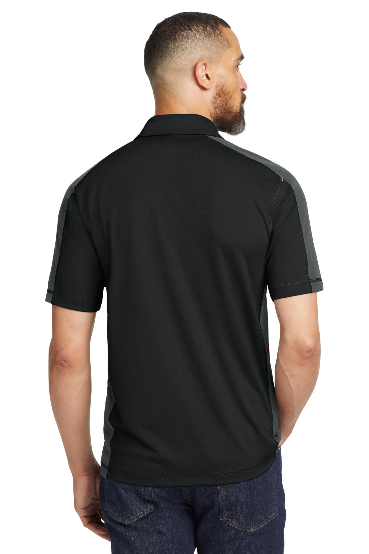 Veer off the beaten track in this polo with contrast bar tacks on the placket and sleeves, contrast shoulder sleeve and side panels and O debossed metal rivets. | 4.6-ounce, 100% poly double-knit mesh with stay-cool wicking technology Flatlock stitching throughout OGIO heat transfer label for tag-free comfort Self-fabric collar OGIO jacquard neck tape 3-button hidden placket with dyed-to-match OGIO buttons Set-in, open hem sleeves Contrast bar tacks and side panel stitch detail OGIO badge on left sleeve