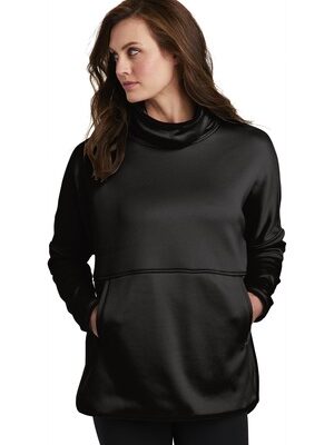 This soft, luxe fleece poncho is sure to keep you warm on those chilly nights at home or outdoors. The cowl neck blocks gusty winds while the front pouch pocket keeps hands warm when temps drop. 360 g/m2 95/5 polyester/elastane luxe heathered stretch fleece Mid-weight luxe stretch fleece poncho Cowl neck Front pouch pocket Overlay tape binding on cuffs and hem Split high/low hem for a feminine touch and added coverage Contrast The North Face logo heat transfer on right back shoulder