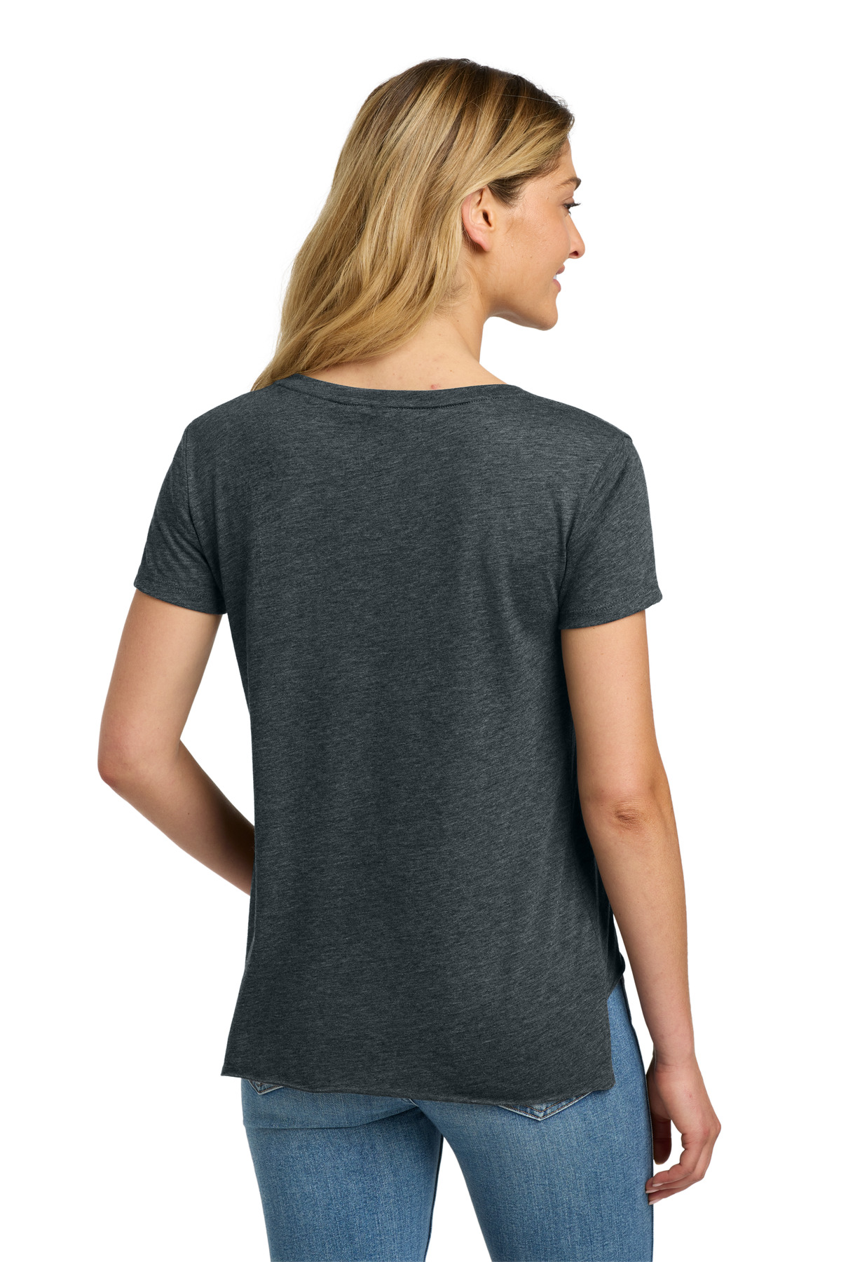 3.5-ounce, 65/35 poly/combed ring spun cotton, 40 singles 1×1 rib knit scoop neck Hemmed sleeves Raw edge, exaggerated drop tail hem Tear-away label Side seamed Relaxed fit