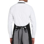 The tailored, upscale look of the tuxedo v-neck–along with its stain and wrinkle protection–makes this the apron of choice for servers or front-of-the-house workers. | 8-ounce, 65/35 poly/cotton twill Adjustable neck strap Two front pockets 27.5’w x 30’l