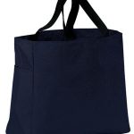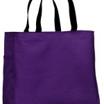 This durable tote comes in a rainbow of colors and is a tremendous value. | 600 denier polyester canvas Large main section with small interior self-fabric pockets Exterior side pocket Web handles Dimensions: 12’h x 12’w x 6.5’d, Approx. 936 cubic inches Note: Bags not intended for use by children 12 and under. Includes a California Prop 65 and social responsibility hangtag.