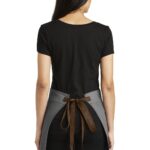 Urban distinction sets this apron apart from the rest. Performance combines with style in the denim-like, wrinkle-resistant fabric. 7-ounce, 60/40 cotton/poly yarn-dyed twill Contrast webbing waist ties Patch pocket, pen pocket Contrast stitch details Measures: 27’w x 18’l