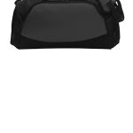 Sized to fit the gear you need to be active, this duffel also has several pockets to keep things organized. A lined, padded bottom gives this durable bag structure and protection.| 600 denier polyester canvas, contrast ripstop accents, abrasion and water-resistant coated bottom Large decoration-friendly front zippered pocket Zippered end pocket with exterior stretch mesh pocket Zippered end pocket with gusseted shoe, ball or equipment pocket with mesh for ventilation Webbing zipper pulls with contrast stitching Padded handle Adjustable, removable shoulder strap with no-slip pad Dimensions: 12’h x 26’w x 12’d; Approx. 3,745 cubic inches Note: Bags not intended for use by children 12 and under. Includes a California Prop 65 and social responsibility hangtag.