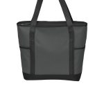 This sturdy zip-top tote keeps everything organized for an easier commute. 300 denier polyester canvas body, 600 denier polyester canvas bottom Zippered top closure Reinforced over-the-shoulder web handles Dimensions: 14’h x 13’w x 6.5’d, Approx. 1,183 cubic inches Note: Bags not intended for use by children 12 and under. Includes a California Prop 65 and social responsibility hangtag.