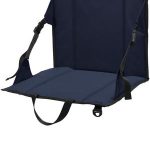 Cheer on the team and securely carry essentials. This portable padded seat adjusts for comfort and has a zippered pocket. | 600 denier polyester Web carrying handles Reinforced support bars in seat back Exterior large zippered pocket for snacks and easy embellishment Adjustable side straps with quick-release buckles for back support and comfort Adjustable shoulder strap so seat can be carried across the body Dimensions:15.25’h x 17’w