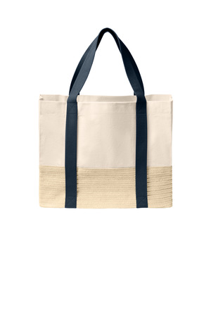 12-ounce, 100% cotton canvas Natural canvas top panel Natural paper ribbon straw lower body Interior hanging pocket Colored web handles Dimensions: 14’h x 18.1’w x 6.7’d Capacity: 2,257.9 cu. in./37 L Weight: 1.26 lbs./0.59 kg Note: Bags not intended for use by children 12 and under. **