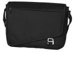 Constructed from durable ballistic fabric, this modest, modern messenger will keep basics organized while protecting your tablet and laptop with padded compartments. | 1,680 denier ballistic polyester Large main compartment with padded tablet sleeve Zippered pocket on front flap for easy embellishment Organization panel under asymmetrical front flap Adjustable sling shoulder strap Laptop sleeve dimensions: 11’h x 14.5’w x 1’d; fits most 15′ laptops Dimensions: 11’h x 15’w x 3.25’d; Approx. 536 cubic inches Note: Bags not intended for use by children 12 and under. Includes a California Prop 65 and social responsibility hangtag.